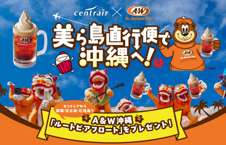 中部国際空港セントレア(所在:愛知県常滑市)は、沖縄路線(那覇、宮古島、石垣島)への直行便の搭乗促進を目的に、「美ら島直行便2025春夏」キャンペーンを実施します。キャンペーン期間中、セントレアから美ら島(那覇、宮古島、石垣島)への直行便をご利用するお客様は、沖縄のハンバーガーショップ「A&W」の店舗にてルートビアフロートをプレゼントいたします。
